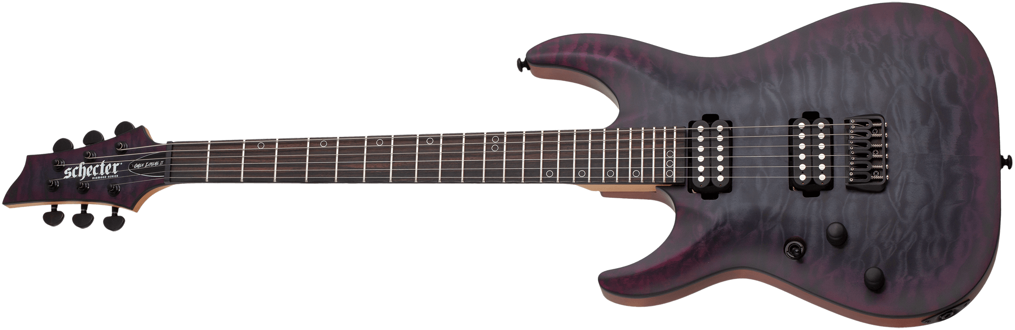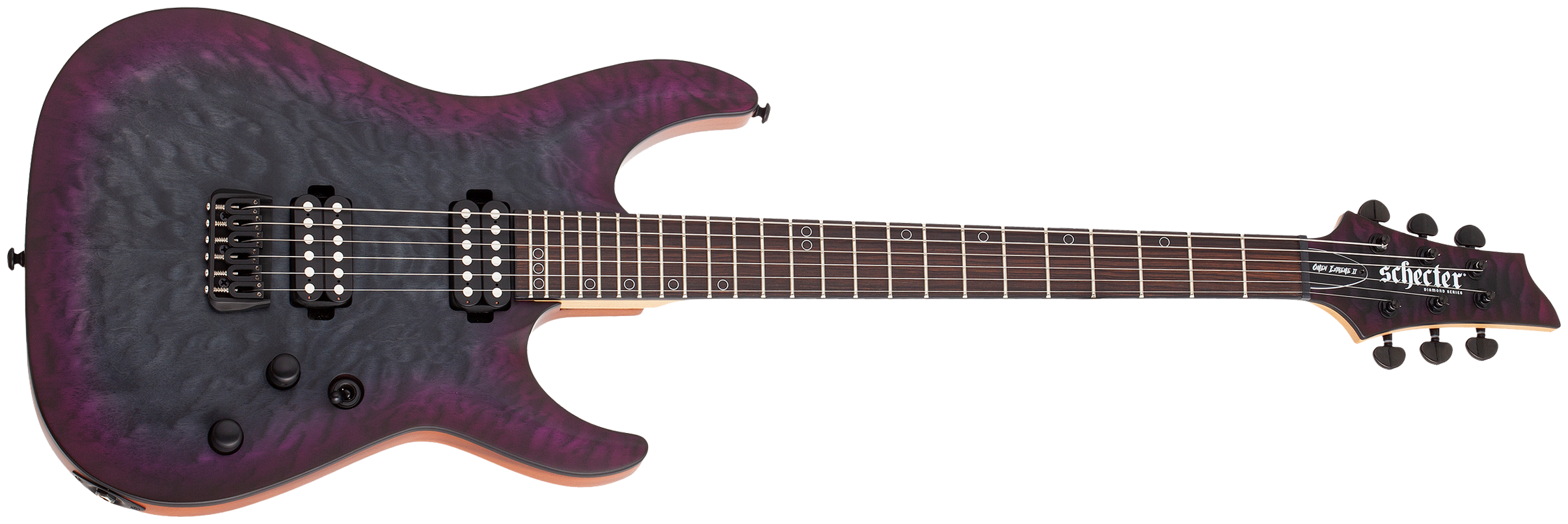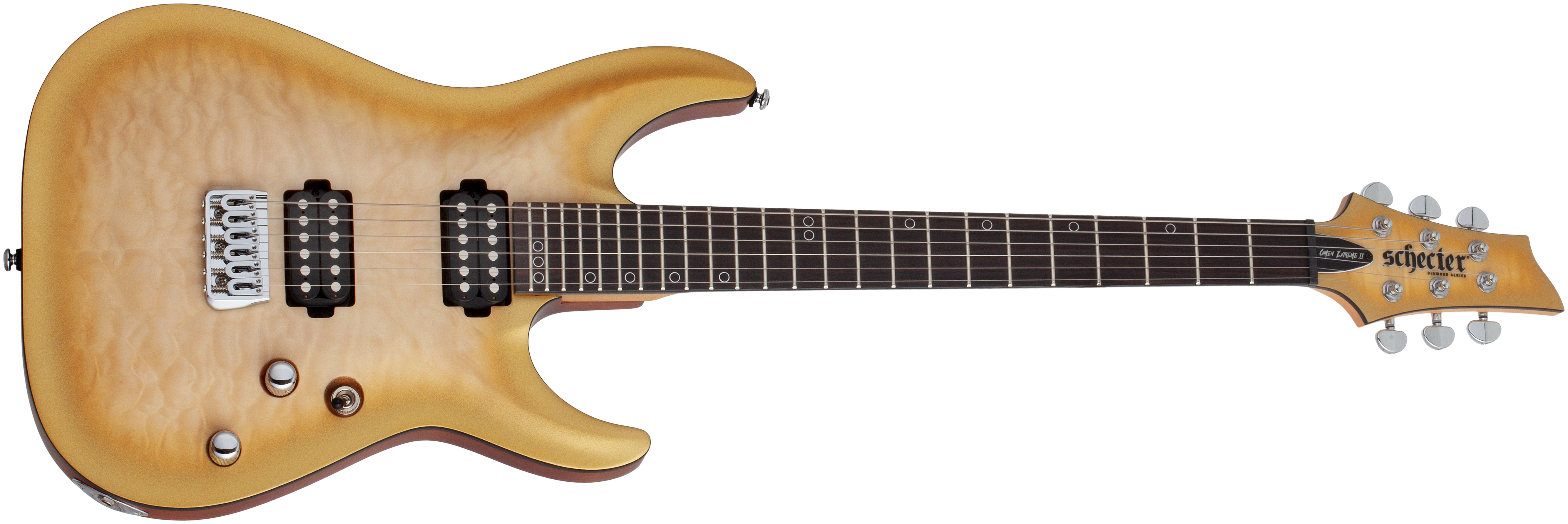 Die Omen Extreme II Modelle bilden die nächste Generation der Omen Extreme Serie. Neben Quilted-Maple Decken und geschraubtem Ahornhals mit einem Ebenholzgriffbrett befinden sich jeweils ein Schecter San Andreas Humbucker an der Hals- und der Bridge-Position.