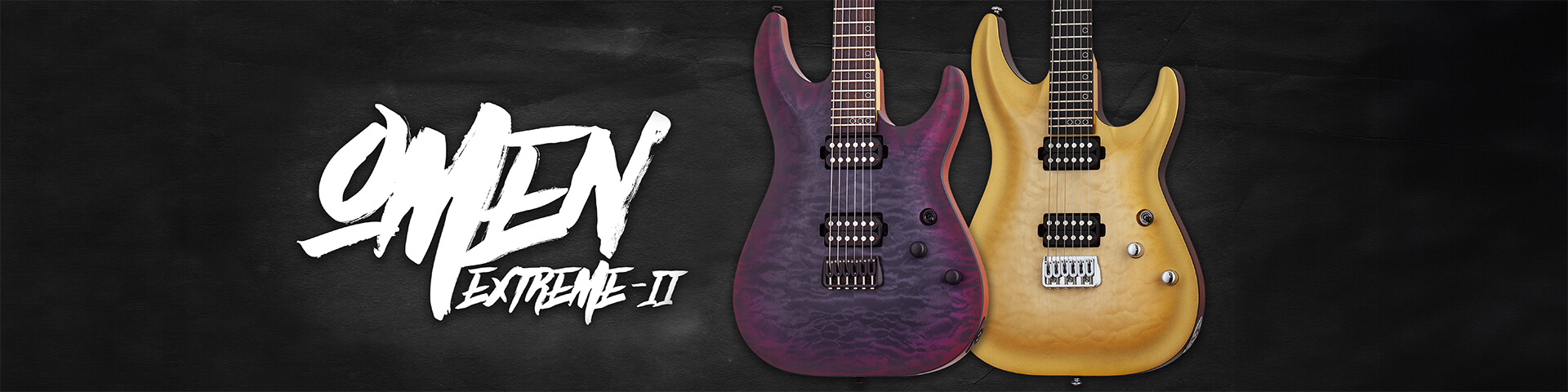 Die Omen Extreme II Modelle bilden die nächste Generation der Omen Extreme Serie. Neben Quilted-Maple Decken und geschraubtem Ahornhals mit einem Ebenholzgriffbrett befinden sich jeweils ein Schecter San Andreas Humbucker an der Hals- und der Bridge-Position.